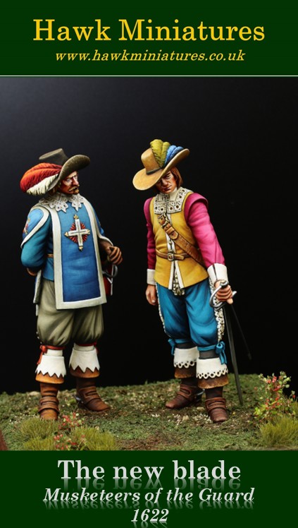 The new blade, Musketeers of the Guard, 1622Hawk Miniatures presents a pair of 75mm scale figures showing a Musketeer testing a new sword, circa 1622.Manufacturer: Hawk Miniatures Availability: 15 in stockSKU: AB/37 £79.95 Qty: Add to cart Custom wishlist OKAdd to wishlistEmail a friendThe New BladeMusketeers of the Guard, 1622 Hawk Miniatures is proud to present a pair of 75mm scale figures showing a Musketeer testing a new sword, circa 1622. Sculpted By: Alan BallOriginal Painted By: Marion BallScale: 75mm Figure Kit DetailsThe kit is a multi-part, multi-figure kit depicting a Musketeer testing a new sword, circa 1622.The figures are 75mm in scale and supplied unmade and unpainted.The kit requires assembly and is not suitable for children under the age of 12.The artist provided any groundwork shown in the pictures and is not included within the kit.Products specificationsAttribute nameAttribute valueConditionNewScale75mmProduct tags French (6), 75mm (33), Alan Ball (36)