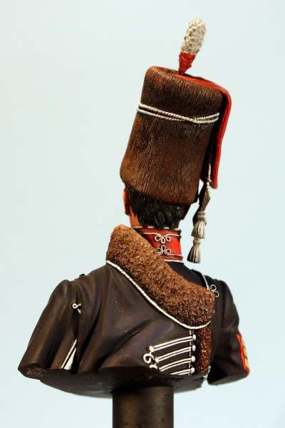 Sergeant The 15th (Kings) Hussars Bust, 1805Hawk Miniatures presents a 1/12th fine scale model bust kit of a Sergeant from the 15th (Kings) Hussar during the Napoleonic period, in full dress uniform.Manufacturer: Hawk Miniatures Availability: 10 in stockSKU: DFG/01 £24.95 Qty: Add to cart Custom wishlist OKAdd to wishlistEmail a friendSergeant The 15th King's HussarsFull Dress 1805 – 1808Hawk Miniatures is proud to present a 1/12th fine scale model bust kit of a Sergeant from the 15th (Kings) Hussar during the Napoleonic period, in full dress uniform.Sculpted By: David F GrieveOriginal Painted By: Eddy VandersteenScale: 1/12th BustKit DetailsThe set is a multi-part bust kit depicting a Sergeant from the 15th (Kings) Hussars in full dress uniform during the Napoleonic period.The bust is 1/12th in scale and supplied unmade and unpainted.The kit requires assembly and is not suitable for children under 12.The artist provided the groundwork shown in the pictures; it is not included in the kit.Products specificationsAttribute nameAttribute valueConditionNewScale1/12thProduct tags Napoleonic (27), British (40), 1/12 (2), DF Grieve (10)
