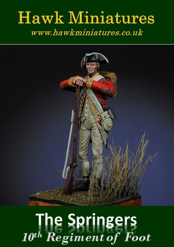 The Springers, American War of Independence 1775Hawk Miniatures presents a 75mm fine scale model figure kit of a Springers (10th Regiment of Foot), American War of Independence 1775.Manufacturer: Hawk Miniatures Availability: 3 in stockSKU: RL/12 £28.95 Qty: Add to cart Custom wishlist OKAdd to wishlistEmail a friendThe Springers10th Regiment of FootAmerican War of Independence 1775Hawk Miniatures is proud to present this 75mm fine-scale model figure kit of a Springers (10th Regiment of Foot) from the American War of Independence, 1775.Sculpted By: Robert LaneOriginal Painted By: Alex LongScale: 75mm FigureKit DetailsThe kit is a multi-part figure kit depicting a Springers (10th Regiment of Foot), American War of Independence 1775.The bust is 75mm in scale and supplied unmade and unpainted.The kit requires assembly and is not suitable for children under the age of 12.Any groundwork shown in the pictures was provided by the artist and is not included within the kit.Products specificationsAttribute nameAttribute valueConditionNewScale75mmProduct tags 75mm (39), AWI (11), American (10), Rob Lane (12)Related products General George Washington, Continental Army, head of the Culper Spy Ring, 1778AB/19Hawk Miniatures presents a 75mm scale figure kit of General George Washington in his Continental Army uniform. As the commander in chief of the continental army and head of the Culper Spy Ring 1778.£28.95Add to cart Custom wishlist OKAdd to wishlist Major Benjamin Tallmadge, Continental Army, Culper Spy Ring, 1778AB/20Hawk Miniatures presents a 75mm scale figure kit of Major Benjamin Tallmadge, director of military intelligence, in his Light Dragoon uniform. As the director of military intelligence Benjamin Tallmadge oversaw the Culper Spy Ring 1778.£28.95Add to cart Custom wishlist OKAdd to wishlist Major John Andre, Adjutant General of the British Army, and British Secret Service in 1779AB/21Hawk Miniatures presents a 75mm scale figure kit of Major John Andre, Adjutant General of the British Army, in charge of the British Secret Service during the American War of Independance.£28.95Add to cart Custom wishlist OKAdd to wishlist General George Washington talking to Major Benjamin Tallmadge, Continental Army, Culper Spy Ring, 1778AB/23Hawk Miniatures presents a 75mm scale figure set showing General George Washington talking to Major Benjamin Tallmadge. As the director of military intelligence Benjamin Tallmadge oversaw the Culper Spy Ring 1778.£49.95Add to cart Custom wishlist OKAdd to wishlist Major John André talking to Abraham Woodhull, about the War of Independance, 1778AB/24Hawk Miniatures presents a 75mm scale figure set showing Major John André talking to Abraham Woodhull, about the War of Independance. Major John André was the British head of intelligence who hunted the Culper Spy Ring, 1778.£49.95Add to cart Custom wishlist OKAdd to wishlist