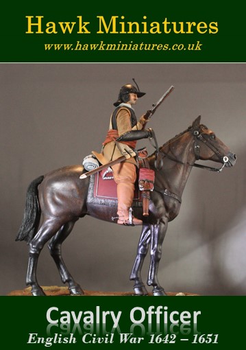 Hawk Miniatures presents a 90mm Scale mounted figure representing a mounted Cavalry Officer, English Civil War, 1642 to 1651.