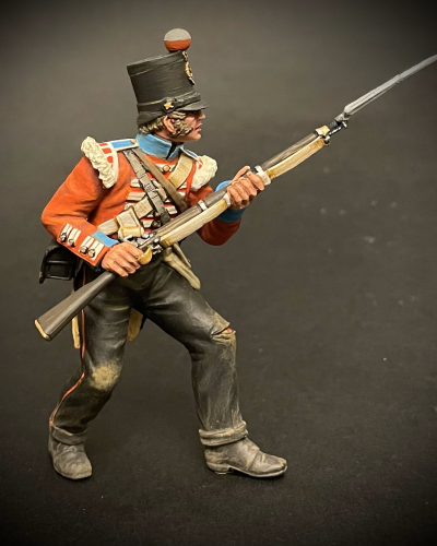 The kit is a multi-part figure kit depicting a crouching private as he storms the Great Redan during the Crimean War, 1853 to 1856.